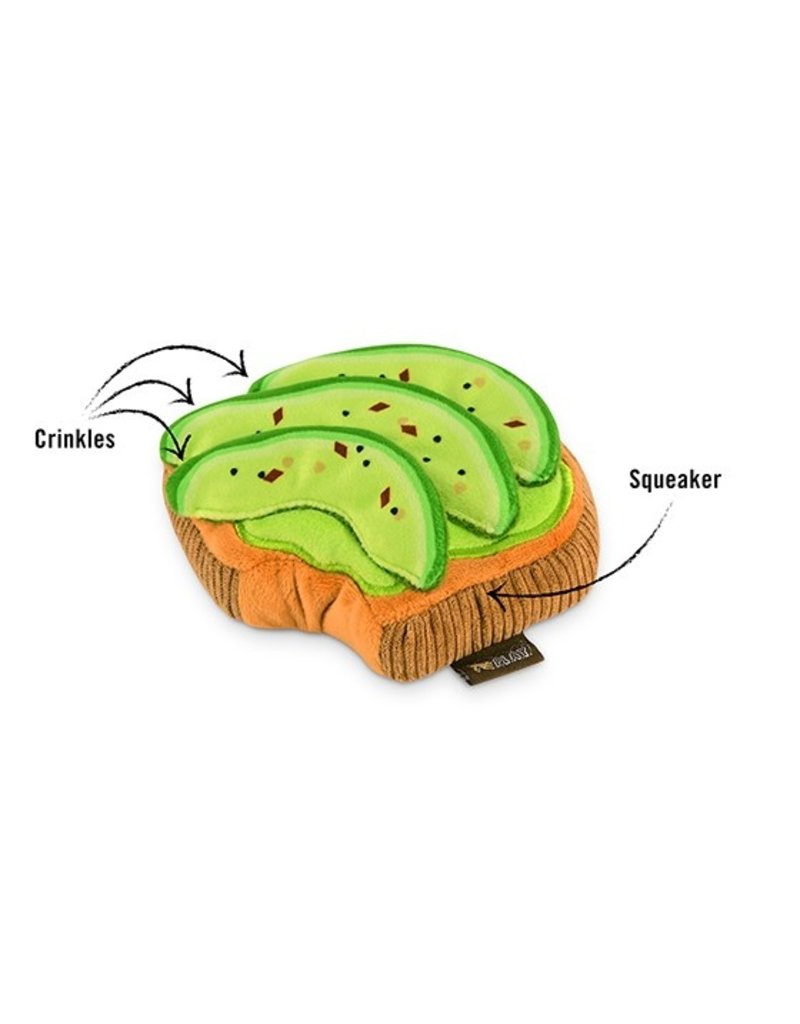 Brunch for your canine companion wouldn't be complete without some healthy and fun Avo-Doggo Toast! Make your pup feel fancy with some exquisite yummy-looking Barking Brunch themed toys from P.L.A.Y.! These adorable plush toys look good enough to eat! This yummy and cute Avo-Doggo Toast features a squeaky plush toast topped with soft crinkly avocado slices for hours of endless fun! Each P.L.A.Y. toy features durable double-layers and double-stitched edges for a long-lasting toy! New ChewShieldTM technology adds a protective lining to provide extra durability. Eco-friendly PlanetFill® filler is made from 100% post-consumer certified-safe recycled plastic bottles for a dog toy that is both safe for your pet and safe for the planet. Your dog will have a blast with these yummy toys! Collect them all! Machine Washable & Dryer-Friendly. Picked by the Pet Beastro for some food-filled fun!